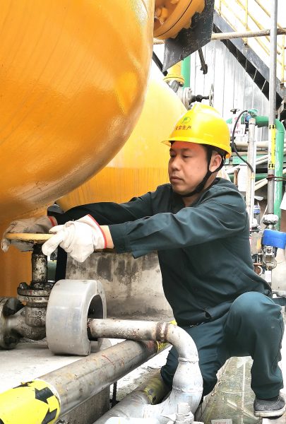在此期間,梅德政遇到過很多挑戰(zhàn)與難題,2018年,復合肥廠涼水塔失火,火情在大家的共同努力下很快得到控制,但火災過后的清淤工作成了更棘手的事。已燃燒和未燃盡的塑料掉入池中,沒有趁手的工具能做到完全清理,必須人工打撈。可是池深壁滑,下面的燃燒廢料和其他材料混雜在一起,作業(yè)環(huán)境有很多未知風險。梅德政二話不說,率先穿好雨衣拿著一只袋子就下去了。高溫環(huán)境、廢棄材料燃燒過的刺鼻氣味,再加上雨衣的行動不便,看似簡單的動作變得特別吃力。其它同事見班長帶頭下去,也一個個跟著下去……
