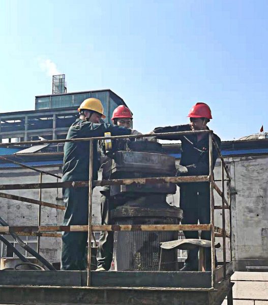 (圖為宜昌鄂中電儀工正在更換磷酸北大罐漿電機(jī))