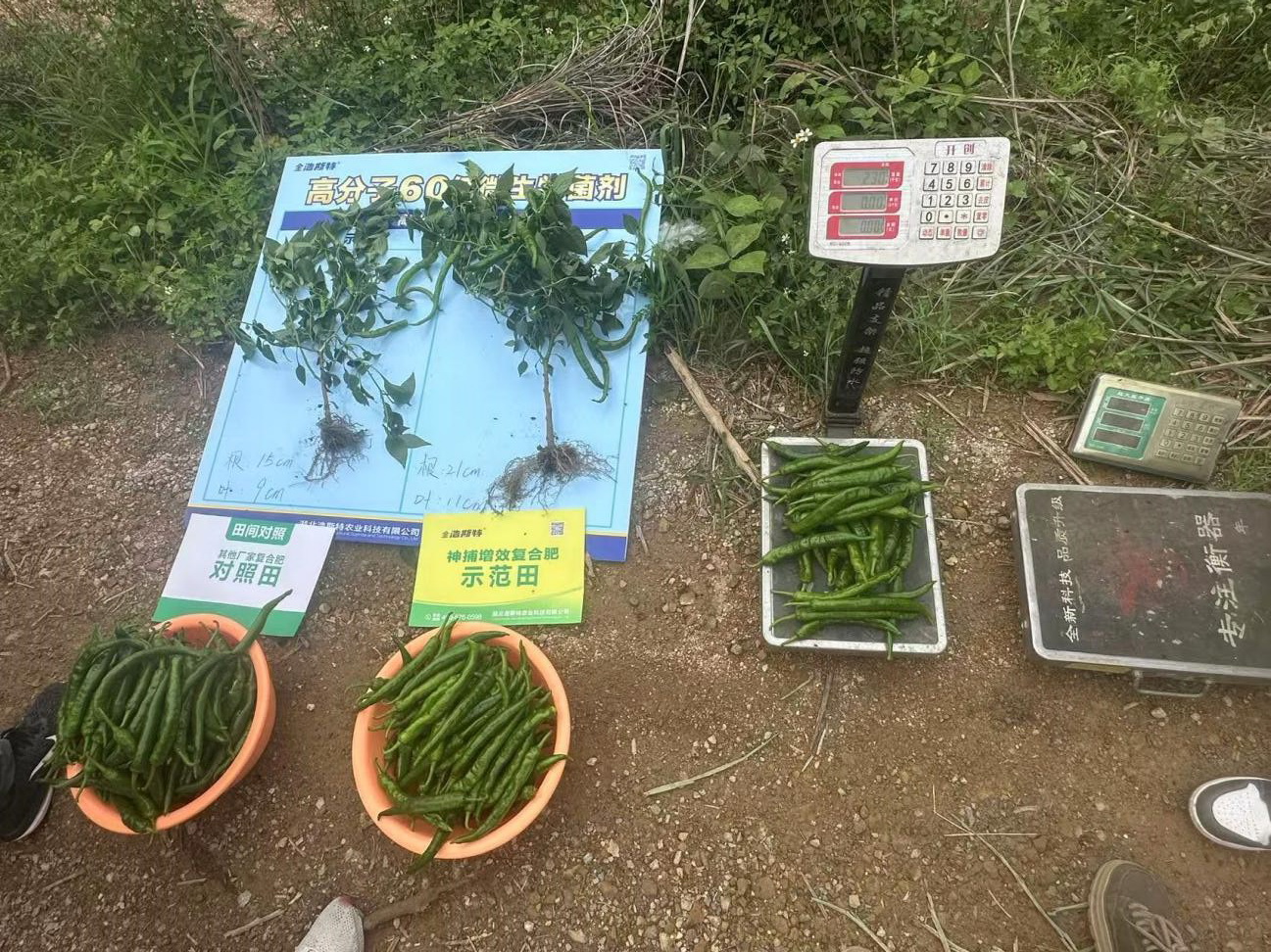 來賓蒙村鎮(zhèn)朗村的辣椒種植基地,一串串綠油油的辣椒掛滿枝頭,在陽光的照耀下閃耀著誘人的光澤。種植戶們臉上洋溢著喜悅的笑容。農(nóng)技師姜老師則手持專業(yè)工具,對這片使用了我們浩斯特神捕系列52%(12-8-32)TE和鄂中高分子60億微生物菌劑的辣椒地認(rèn)真地進(jìn)行測量、稱重、記錄等工作。經(jīng)過緊張而有序的測產(chǎn)過程,結(jié)果令人振奮。辣椒的單株產(chǎn)量、畝產(chǎn)量等各項(xiàng)數(shù)據(jù)都顯示出今年辣椒的豐收態(tài)勢。示范田每畝辣椒種植棵數(shù)為:2300顆,根長21CM,葉片11CM,平均10株辣椒采摘363個(gè)辣椒,平均每10株辣椒采摘斤數(shù)為22斤,平均每株辣椒采摘重量為2.17斤,折算下來,平均每畝產(chǎn)量5060斤。而對照田每畝辣椒種植顆數(shù)僅為:2300顆,根:15CM,葉:9CM,平均10顆辣椒采摘數(shù):326個(gè),平均每10顆辣椒采摘斤數(shù):18.8斤,平均每株辣椒采摘重量:1.92斤,平均每畝產(chǎn)量:4416斤。示范田與對照田差異顯著。
