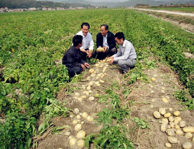 5月14日一大早,鄂中生態(tài)工程股份有限公司鄂北分公司片區(qū)經(jīng)理莊曉磊和服務(wù)隊(duì)就來到隨州廣水市平嶺村村前李宜美和李志學(xué)兩兄弟鄂中復(fù)合肥馬鈴薯示范田里,在5月即將收獲的季節(jié),一個(gè)個(gè)馬鈴薯個(gè)大均勻,賣相好,色澤黃亮,皮毛好,病蟲害少,不裂果,畝產(chǎn)可達(dá)到3500余公斤。在長嶺農(nóng)資經(jīng)理向和平的吆喝聲中,農(nóng)民們得知是鄂中生態(tài)工程企業(yè)現(xiàn)場(chǎng)觀摩指導(dǎo)馬鈴薯基地示范田配肥用肥,一下子80多種植大戶紛紛圍了上來,你一言我一語地詢問著馬鈴薯如何科學(xué)施肥。
