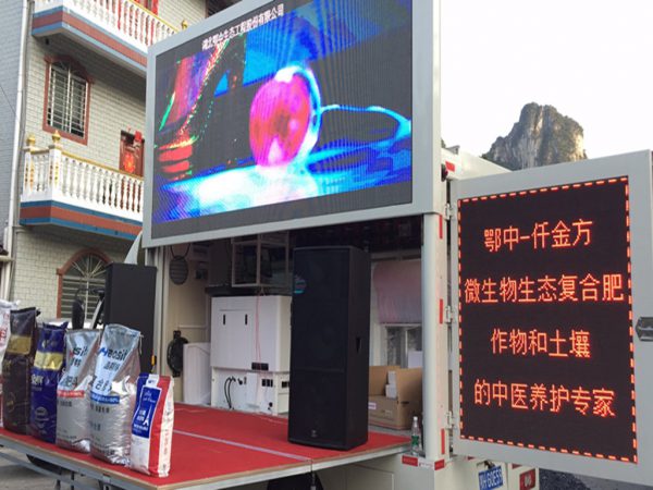 鄂中生態(tài)大型智慧農(nóng)化音響服務(wù)車隊(duì)就是流動(dòng)的農(nóng)化知識(shí)源,豐收的唱響曲。隨車的有一線促銷精英,有豐富經(jīng)驗(yàn)和知識(shí)的農(nóng)化師,主持人等。大屏幕可以隨時(shí)在田間地頭打開進(jìn)行演唱式授課;該服務(wù)車具備專業(yè)的功能硬件,可以有針對性的開展一系列農(nóng)化服務(wù)。如根據(jù)種植作物的不同,結(jié)合服務(wù)區(qū)域內(nèi)土壤狀況、肥力情況、作物品種及需肥規(guī)律、農(nóng)民施肥習(xí)慣等展開田間現(xiàn)場培訓(xùn)指導(dǎo),提供咨詢服務(wù),滿足農(nóng)民、種植大戶個(gè)性化的需求。