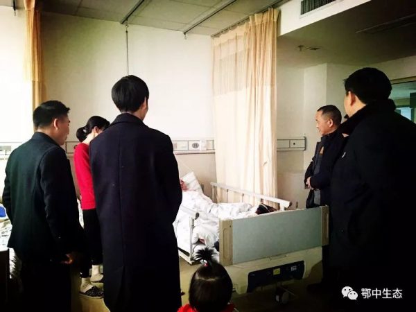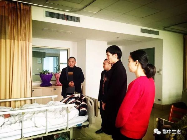 ?????? 2018年1月1日下午鄂中生態(tài)工程股份有限公司工會副主席吳全策,人力資源部副部長邱克明以及豐神農(nóng)資辦公室主任夏洪元、梁鑄一行帶著楊董事長的關(guān)心和公司各部門兄弟姐妹的牽掛前往荊門二醫(yī)血液科看望了患病員工羅榮寶。吳主席一行向羅榮寶同志表達了真誠的問候,讓他積極配合治療并鼓勵他戰(zhàn)勝病魔,早日恢復健康,回到我們的大家庭中來,并送上了鮮花果籃等慰問品和愛心捐款103882元及2000元工會慰問金。