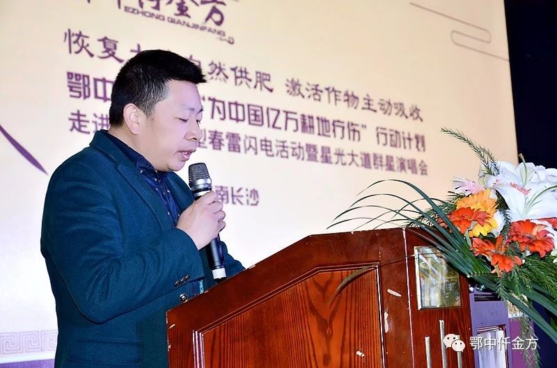 鄂中生態(tài)總經(jīng)理助理蔡建新在致辭中表示:鄂中仟金方微生物生態(tài)復(fù)合肥向我們證明:一是符合國家的產(chǎn)業(yè)政策,符合供給側(cè)結(jié)構(gòu)性改革,符合消費(fèi)者需求的變化,向綠色生態(tài)肥料轉(zhuǎn)型,把土地調(diào)好,把作物品質(zhì)提高,關(guān)注健康。二是解決了土壤和作物的困境。鄂中仟金方能減少了化肥用量,提高化肥利用率,重構(gòu)健康的土壤,提高了作物抵抗病蟲害的能力,達(dá)到生物預(yù)防病害的效果,為土壤修復(fù)、減肥增效、農(nóng)產(chǎn)品提質(zhì)的國家戰(zhàn)略提供了強(qiáng)有力的保障。三是規(guī)避了產(chǎn)能過剩,產(chǎn)品同質(zhì)化嚴(yán)重,市場(chǎng)競(jìng)爭(zhēng)日趨激烈這一現(xiàn)狀。四是給我們帶來了廣闊的市場(chǎng)機(jī)遇。