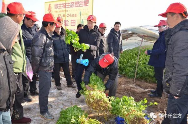 寒冬凜冽,大范圍雪災,對于中原最大的無公害蔬菜基地—新野縣30萬畝大棚蔬菜來說是個慘烈的寒冬,多地遭遇凍害,作物受災較嚴重。1月11日,在河南新野縣城郊鄉(xiāng)袁莊村10組,鄂中仟金方0.4畝西芹試驗示范田里,正在舉行一場人氣爆滿的現場測產觀摩會,豫南分公司經理鄒應成率鄂中仟金方中醫(yī)養(yǎng)護隊員,攜手專營仟金方經銷商曹永波,示范戶梁東獻及當地新型職業(yè)菜農100余人共同見證了鄂中仟金方微生物生態(tài)復合肥雪災中減肥增效奇跡。現場與新型職業(yè)種植大戶開展體驗式營銷,預定仟金方42.6噸。在如此嚴峻的雪災形勢下,寒冬中增添了一幕堅挺健壯的新綠,鄂中仟金方逆勢上演神話,用實效說話,以品質發(fā)聲,全力破解蔬菜凍害,減肥增效護航中原第一大蔬菜基地。