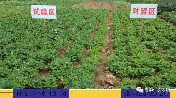 結(jié)果: 1.仟金方18-10-14明顯比常規(guī)20-20-20株高更高,分枝數(shù)多,側(cè)枝長(zhǎng)更長(zhǎng),單株結(jié)果數(shù)多,飽果率更高,花生青枯病、根腐病、葉斑病發(fā)病率更低。2.最后測(cè)產(chǎn)表明:仟金方18-10-14比常規(guī)20-20-20增產(chǎn)18.2%。