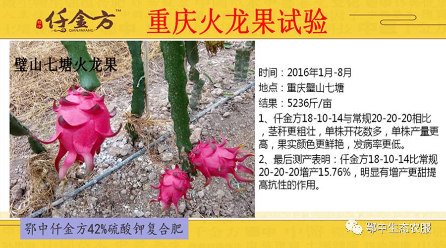 鄂中仟金方重慶火龍果試驗(yàn)田功效