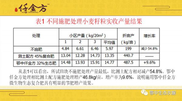 鄂中仟金方荊門(mén)小麥試驗(yàn)田功效