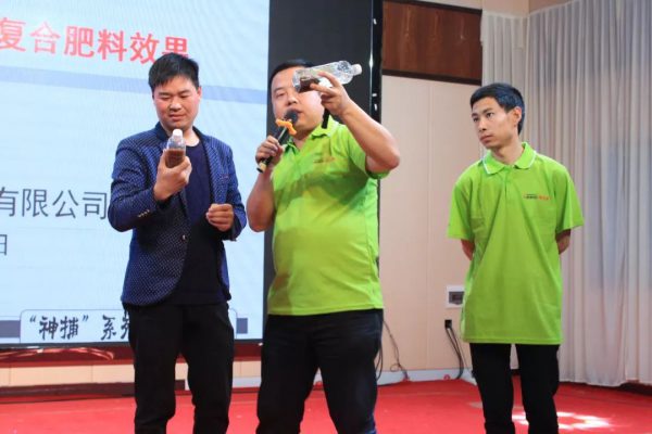 為了讓現(xiàn)場的觀眾近距離感受“神捕”系列增效復(fù)合肥產(chǎn)品,湖北浩斯特化肥有限公司首席農(nóng)化師周忠雄現(xiàn)場為大家進(jìn)行了水土加聚羧酸對比試驗演示和示范田的實例對比展示,帶領(lǐng)大家親眼見證了“神捕”系列增效復(fù)合肥的魔力,大家對“神捕”系列增效復(fù)合肥的效果和市場更加有信心。