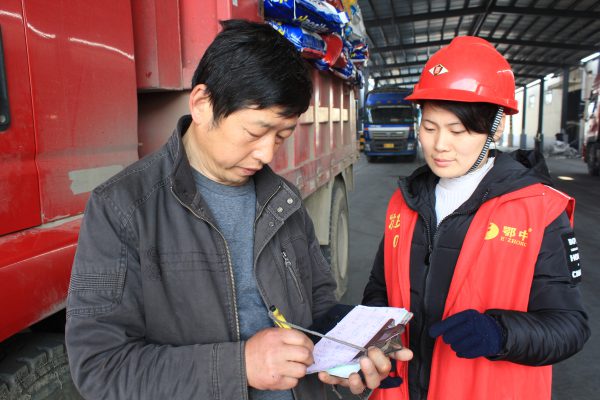 總部高塔廠收發(fā)貨員龍園園請司機對優(yōu)質(zhì)服務(wù)進行評價(高中 攝)