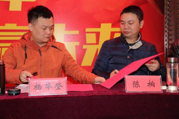 - 圖為總經(jīng)理?xiàng)钊A登與分管生產(chǎn)副總經(jīng)理陳柏簽訂2019年安全生產(chǎn)責(zé)任書(shū)