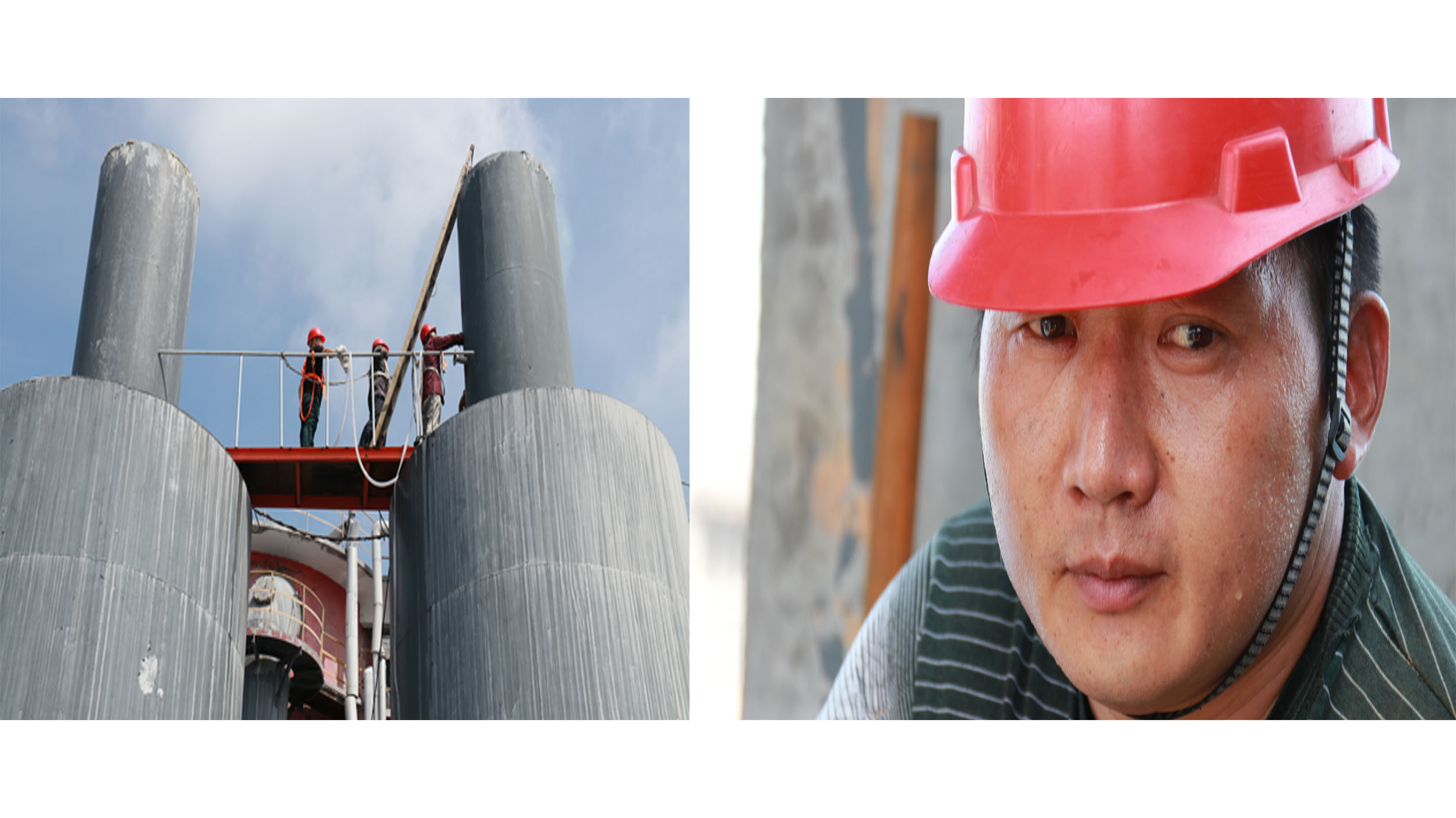 7月24日中午時分,火辣辣的太陽就像一個大火球,把總部磷銨廠尾氣洗滌塔頂鐵板灼烤到 60-70攝氏度,但該廠維修工仍然在高溫下堅持搶修作業(yè)。