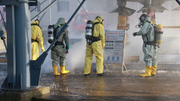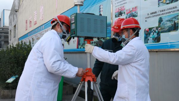 演練現(xiàn)場,只見警戒人員封鎖現(xiàn)場實(shí)施現(xiàn)場控制,嚴(yán)禁無關(guān)車輛和人員誤入“事發(fā)現(xiàn)場”,消防人員快速從上風(fēng)口迂回到液氨罐區(qū),使用噴淋裝置對泄漏液氨進(jìn)行再稀釋。同時(shí),4名消防員迅速穿戴好防化服,正壓呼吸器,進(jìn)入“現(xiàn)場”進(jìn)行檢查,醫(yī)療人員對受傷人員快速救護(hù),檢查修人員緊急處理泄漏點(diǎn)。
