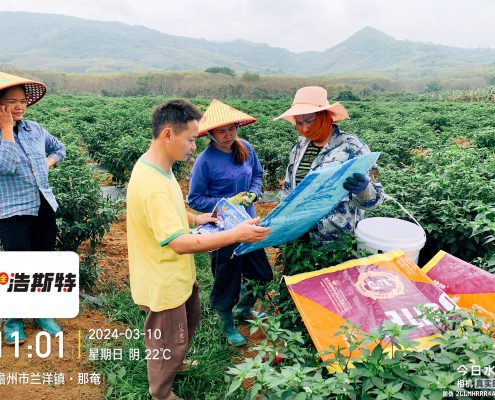 圖為海南朝霞農(nóng)業(yè)工作人員正在為農(nóng)戶講解神捕用肥技術(shù)