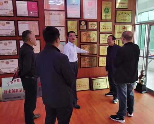 3月2日,市場(chǎng)部部長(zhǎng)鄧君清、廣西鄂中肥業(yè)有限公司經(jīng)理陳勇、桂北分公司經(jīng)理陳誠(chéng)一行赴廣西農(nóng)墾集團(tuán)旗下廣西化工研究院
