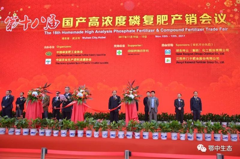 11月10-12日,2017中國磷復(fù)肥工業(yè)展覽會暨第十八屆國產(chǎn)高濃度磷復(fù)肥產(chǎn)銷會”在武漢新城國際博覽中心隆重舉行。連續(xù)舉辦18屆的產(chǎn)銷展覽會是我國化肥行業(yè)最具影響力的大型專業(yè)展會。鄂中生態(tài)總經(jīng)理楊華登,副總經(jīng)理陳柏,代中旭,朱玉軍,大區(qū)總經(jīng)理張德鈺、杜水清、李九稽率隊盛裝參展。