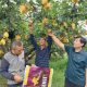 示范園里,棵棵桃樹郁郁蔥蔥,掛滿了色澤鮮艷、果形美觀的水蜜桃。這些水蜜桃表皮光滑細膩,肉質(zhì)鮮嫩多汁,香甜可口,令人垂涎欲滴?!皞€大,色好”“平均都在半斤以上,沒有小個”。現(xiàn)場,種植戶寇駿哲分別從桃的糖度、果個、重量、口感等多方面,為大家展示了他家的中桃14和黃金蜜桃,在沖施了鄂中仟金方肥料后的出眾表現(xiàn),收獲了極大好評。