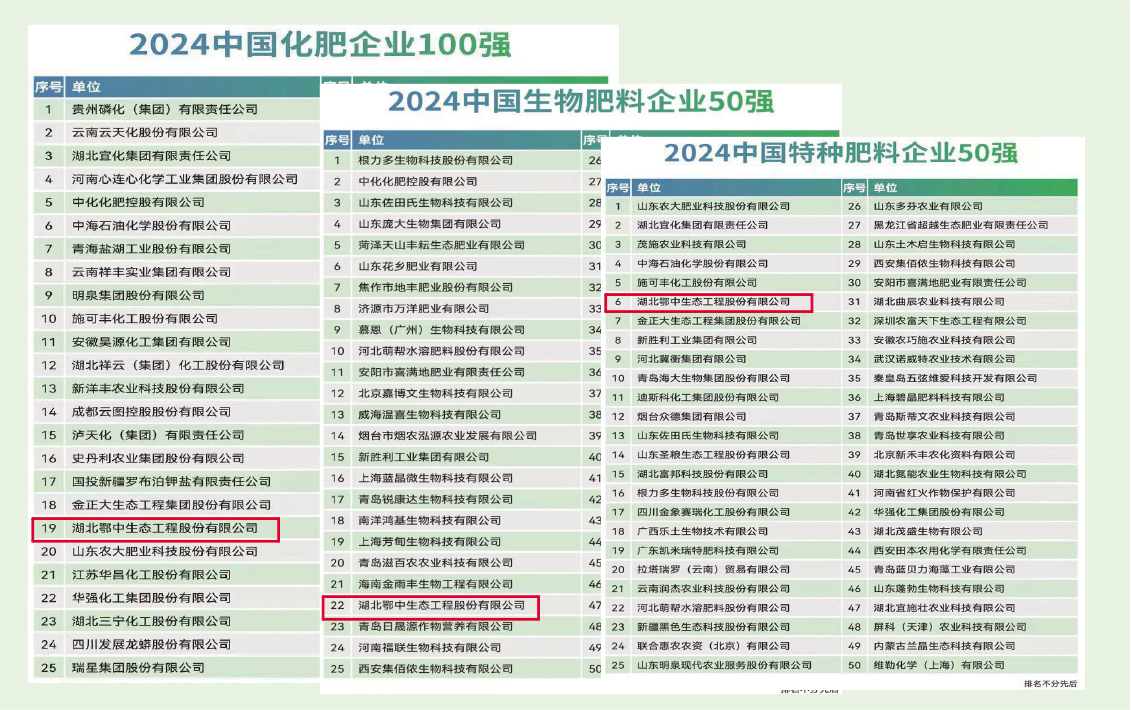 鄂中生態(tài)入選2024中國化肥企業(yè)百強(qiáng)榜單