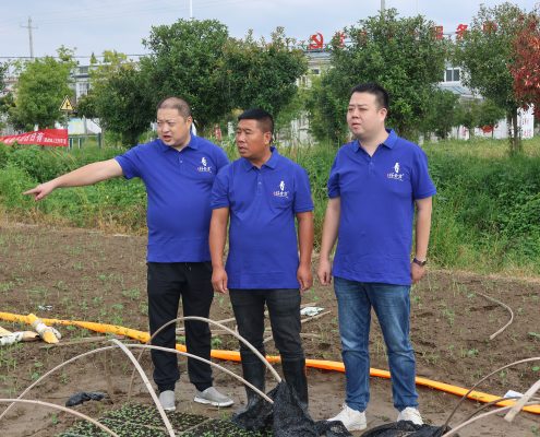 龔斌(左一)與種植戶查看蔬菜長勢